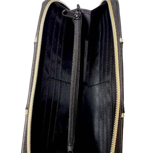 1 zip pocket 2 full size bill pockets 12 card holders. 2 cash sleeves